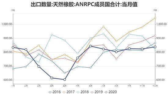 ANRPC最新报告显示,全球天然橡胶产量在2020年的前11个月同比下降8.3%,至1137.6万吨,12月份可能同比下降8.9%。与上一期发布的数据相比,2020年的供应前景上调了8.1万吨,至1267.8万吨,市场预计全球产量将在2021年1月恢复。