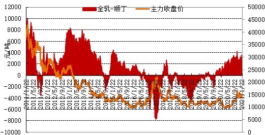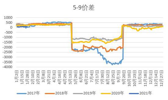 9-5价差接近70,短期低于无风险套利的成本,由于近月供应偏紧,远月预期需求回升,近月以及远月仍有炒作题材,9-5价差预计宽幅震荡。