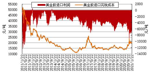 混合胶套利利润较高,市场或仍有混合胶套利需求,不过国内轮胎需求进入淡季,国内轮胎厂家以及贸易商逐步放假,进口预计处于最低位,反馈在数据上,预计2月进口量环比下滑同比小幅下滑。