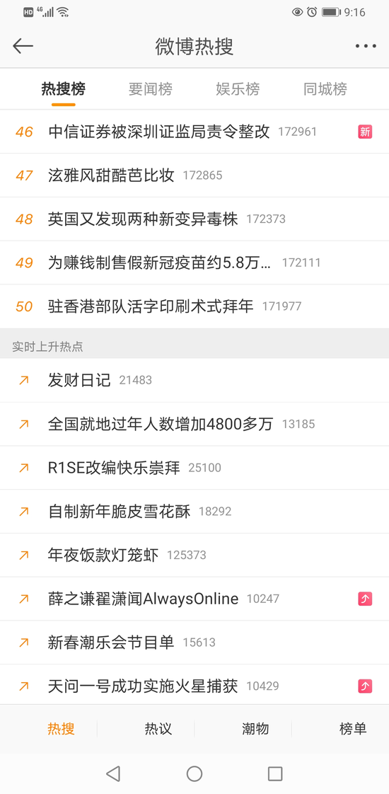 从股价表现来看,1月21日至2月5日,中信证券连续12天下跌,历史罕见,跌幅累计达15%。今日收盘,中信证券微跌0.43%,每股报27.87元,总市值3603亿元。而中信证券也是罕见的冲上热搜榜。