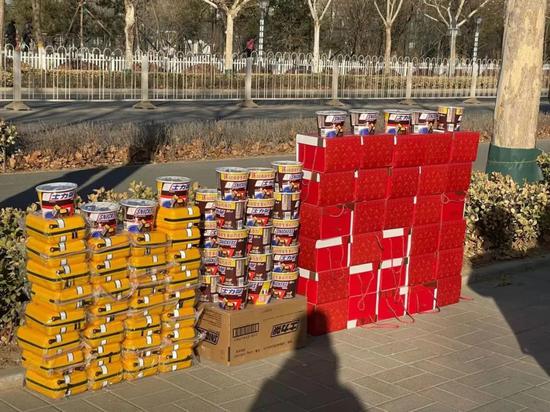 公司为骑手准备的节日礼包。摄影:王玄璇