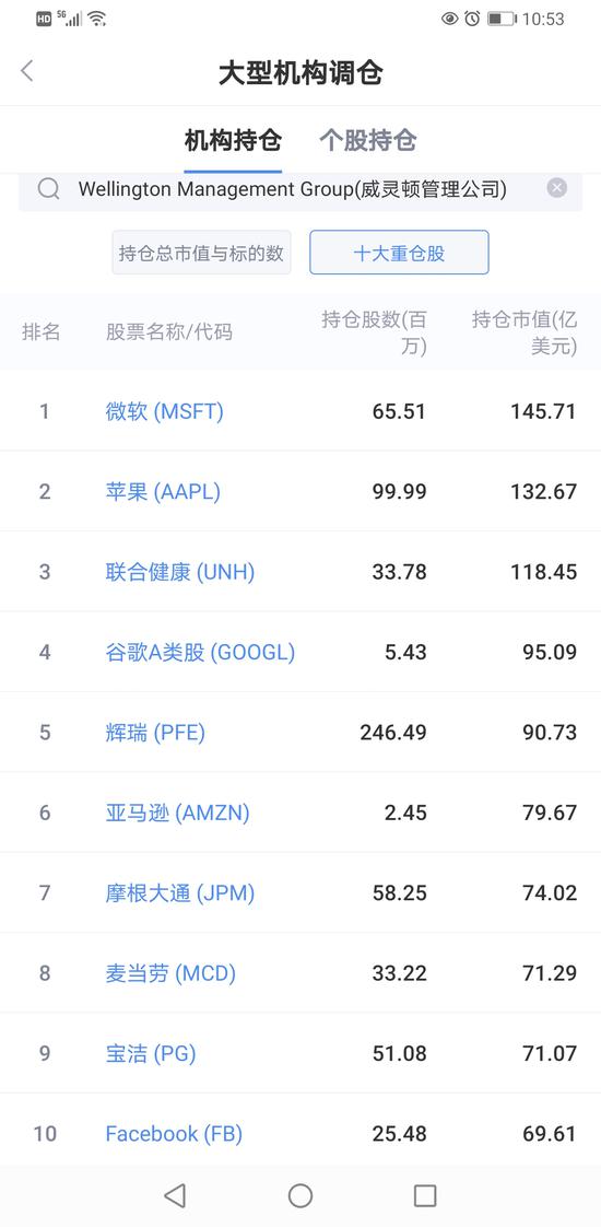 查看最新行情新浪财经讯 威灵顿管理公司(Wellington Management Group)于2月12日披露的13F持仓报告显示,该机构四季度末股票持仓总市值为5308.56亿美元,季度环比增加10.08%。截至披露日,该机构的整体持仓在披露13F报告的投资机构中排名为第7位/4051。