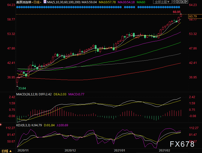 周一(2月15日)美油高开高走,由于得州的寒冷天气限制了页岩气的供应。短线多头上涨动能仍然较大,投资者日内仍然可以关注逢低买入的机会。