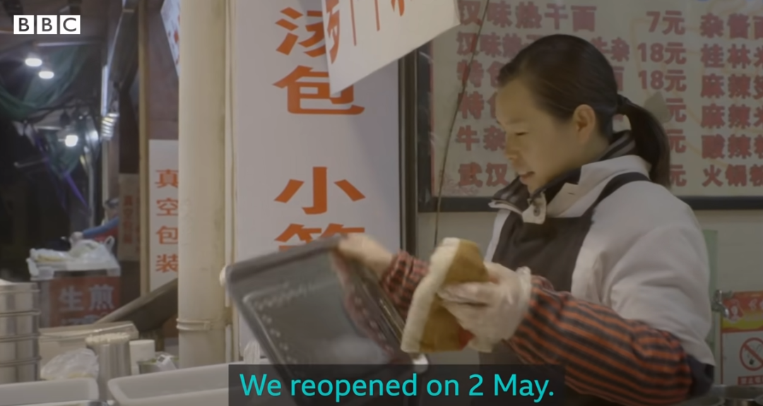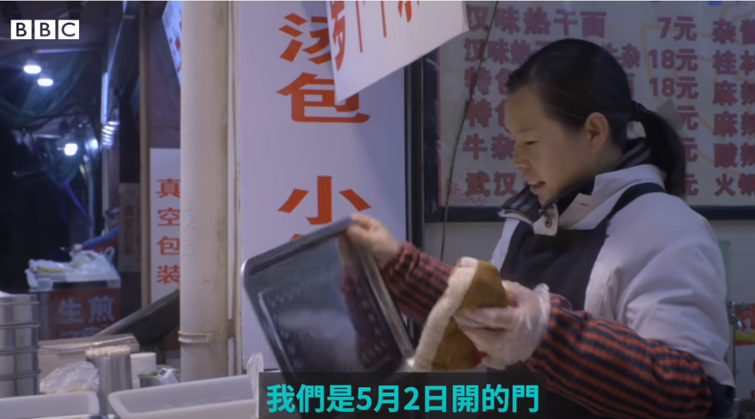 从下面这几组来自节目中的对比图中,耿直哥相信大家应该都可以清楚地看到,在BBC中文版播放的这期节目中,武汉街头的色彩是更符合当地实际色彩的明亮颜色,可到了英文版的节目中,相同的场景却变得极为苍白灰暗,很明显是被人刻意打上了一层“阴间滤镜”: