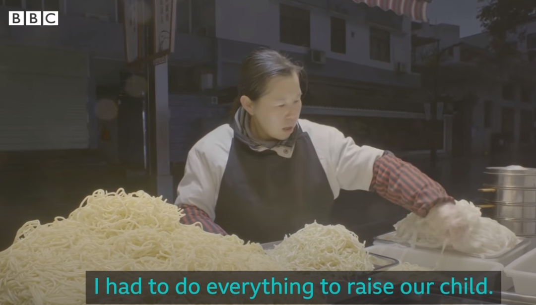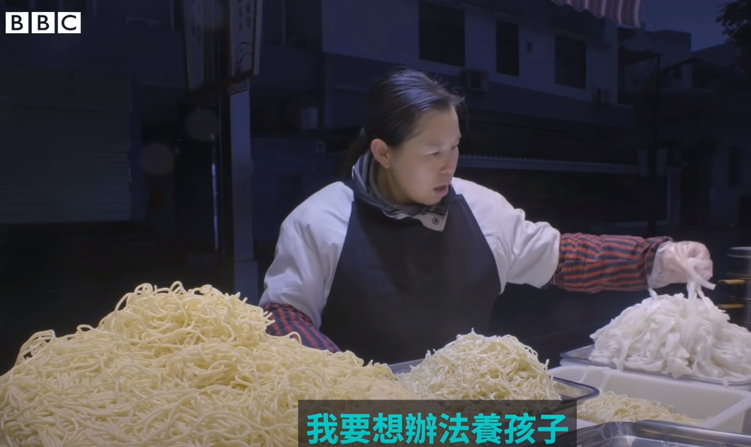 而在节目中涉及武汉夜晚的镜头中,BBC中英版的节目的色彩也同样存在明显的差距。如下面这四组对比图所示,在BBC给西方人观看的英文版的节目中,武汉夜晚的街头被明显地打上了一层灰暗并带有一种病态般的黄色滤镜。
