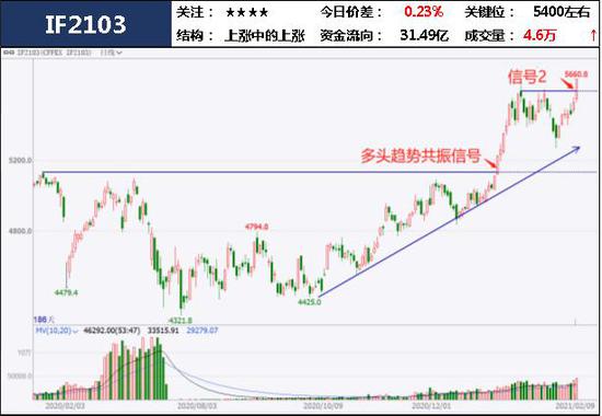 2.盘面:盘中如期上坡前高5723,再次触发多头趋势共振信号,上涨结构明显。