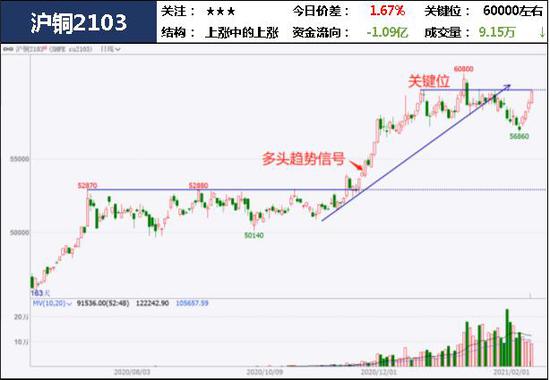 近期市场上对美国通过刺激计划的看好预期增强,美元指数回落,加之国内资金紧张局面有所缓解,市场对有色金属趋于乐观。供给上,受到南美铜矿发运受阻的影响,铜矿供应不足也进一步提振价格。受美国新一轮的刺激方案提振,盘中持续走强冲击上方关键位,盘中如期站稳关键位多单可继续关注。