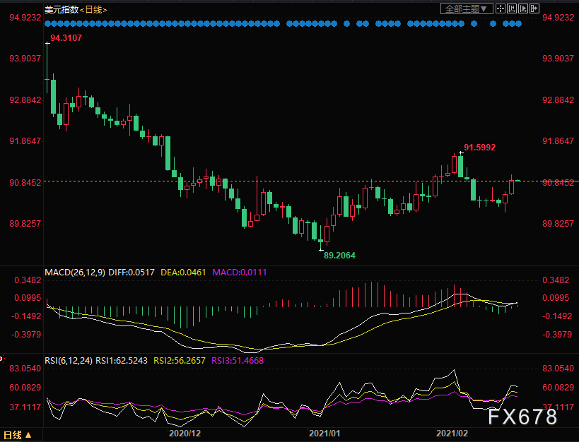 周三上涨0.4%至90.94,金价则受其拖累再度大跌,跌幅达1.02%。