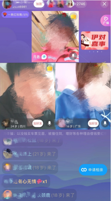 随机点开视频相亲软件,对比传统的文字交流,视频直播确实更有冲击力,效率也更高。例如在伊对软件中,分为红娘+男女嘉宾共三人的普通相亲;一名或两名红娘+多名男女嘉宾自由连麦的七人相亲以及需要申请才能进入的专属相亲。