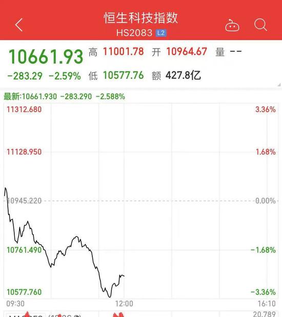 前两天暴涨的港股,今天也惨淡。恒生指数跌逾1%,恒生科技指数更是一度暴跌逾3%。
