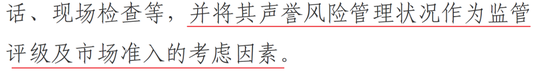 同时,声誉风险事件的处置防范要纳入考核,管理工作也要纳入内部审计!