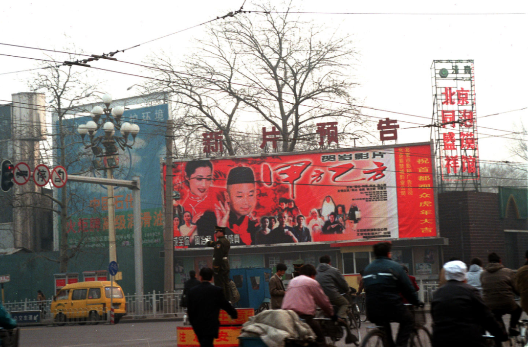 竖立在北京东长安街街头的贺岁片《甲方乙方》的巨幅海报。新华社记者 黄敬文 摄(1997年12月26日发)