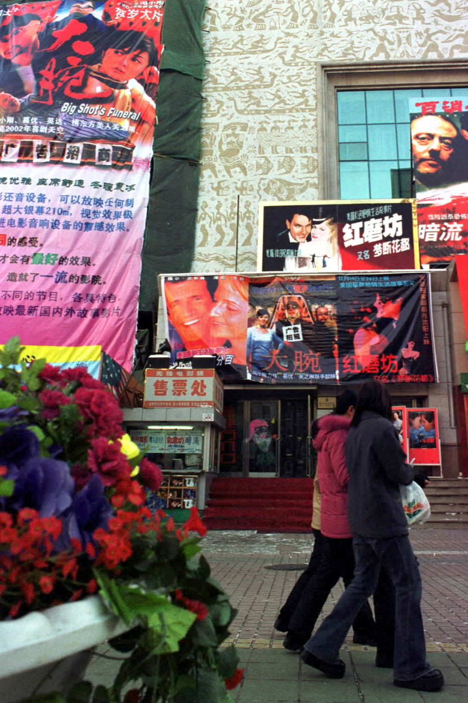 2001年12月15日,沈阳一家影院前挂满多部影片的宣传画。新华社记者 李钢 摄