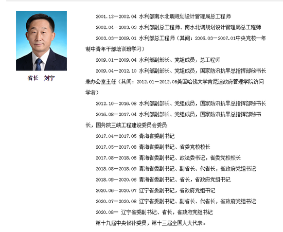 2017年4月,时任水利部副部长的刘宁空降青海,刘宁先后担任青海省委副书记、政法委书记,青海省省长,2020年6月,刘宁跨省到了辽宁,他现任辽宁省省长。