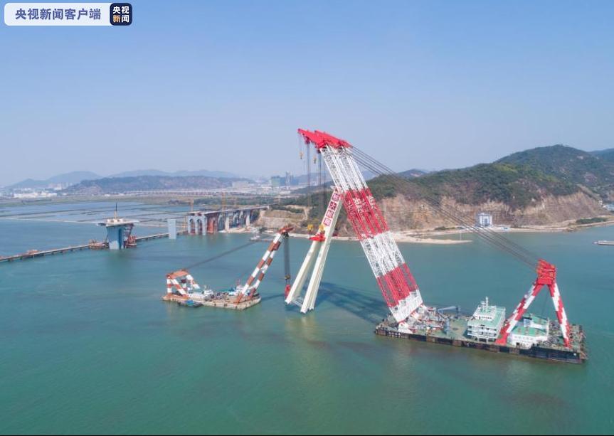 2月19日上午11时18分,由中铁大桥局承建的公铁同层多塔斜拉桥——珠机城际铁路金海特大桥,首个钢主塔成功架设到位。