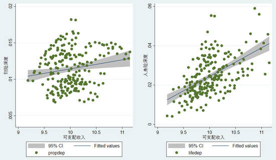 初步共识,保险深度应与人均收入、消费结构密切相关。当然,由于财险和人身险存在业务性质的明显差异,我们将分别研究人均收入、消费结构对财险深度和人身险深度的影响差异。