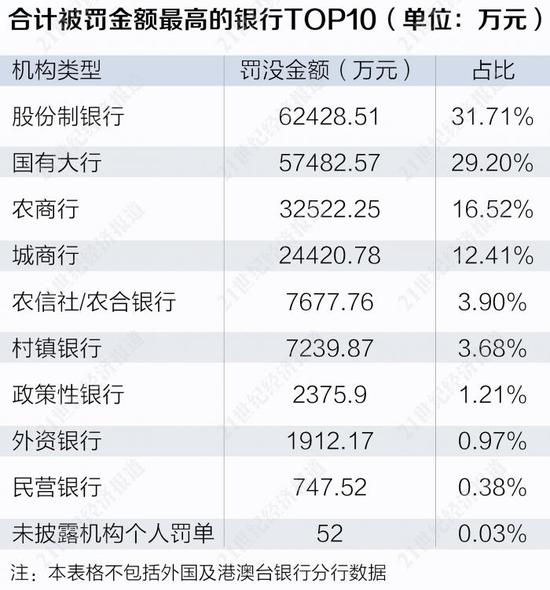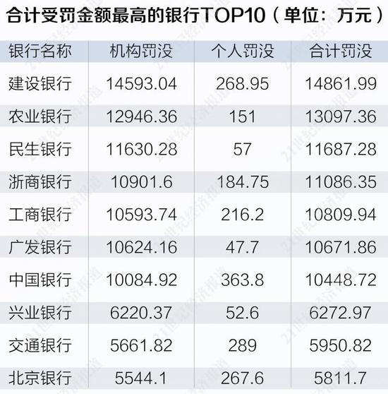 其中民生银行收到2020年最大单笔罚单,约1.08亿;其次是浙商银行,单笔罚金达1.01亿。