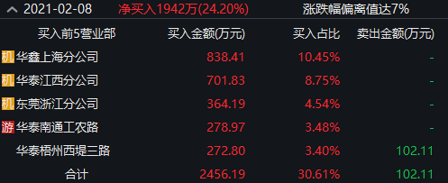 卖一至卖三席位分别为:华鑫证券有限责任公司上海分公司、华泰证券股份有限公司福州五一北路证券营业部、财达证券股份有限公司沧州黄骅迎宾大街证券营业部。