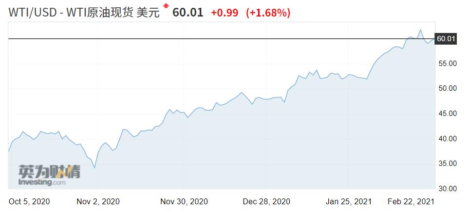当前油价已经攀升至超60美元每桶,同比涨幅达到50%。
