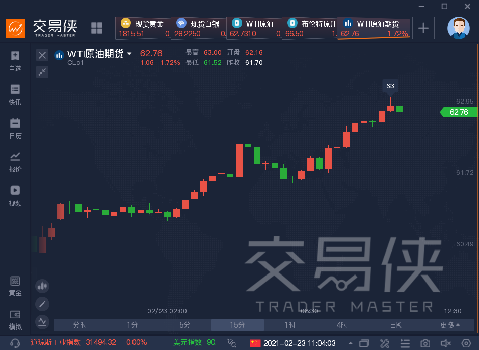 周二亚盘期间,油价继续上涨,WTI原油期货涨幅一度扩大至2%,最高触及63美元/桶;布伦特原油期货涨幅也扩大至2%,报66.54美元/桶。