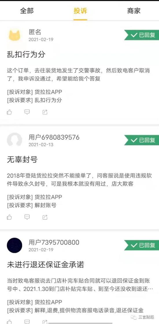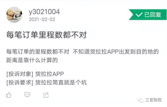 该投诉内容得到了货拉拉的回复,但具体回复内容不得而知。
