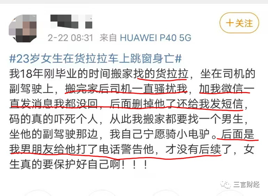 2月6日晚,长沙23岁女生使用货拉拉搬家途中跳车身亡。