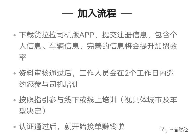在注册货拉拉司机信息服务协议中,三言财经发现,《协议》提到,货拉拉仅为运输服务提供方与运输服务需求方提供中立、独立的第三方信息中介服务,“阁下同意及承认货拉拉不是阁下的代理或运输服务需求方的代理,不是运输服务中的需求方或提供方,亦不是雇用司机之合约或租用参与车辆之合约的任何一方,亦与阁下不存在任何挂靠、雇佣、合伙、合资或其他关系”。