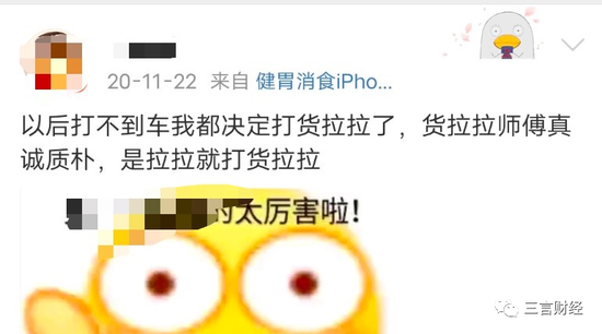 在货拉拉平台还存在“不拉货拉人”的情况,有网友称,打不到车的时候可以打货拉拉,司机秒接单。