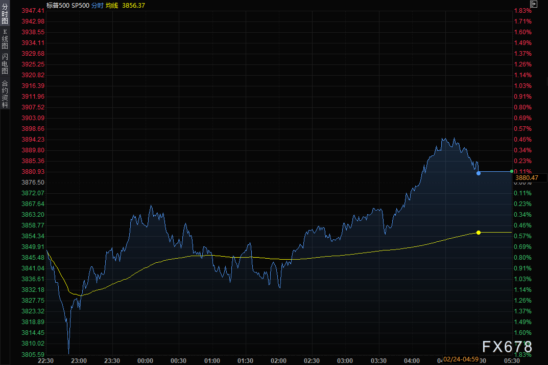 指数上涨0.1%,盘中一度下跌1.8%。鲍威尔讲话后,纳斯达克100指数也几乎抹去多达3.5%的跌幅。