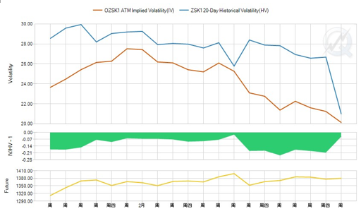 图表4:OZSK1合约隐含波动率与历史波动率走势