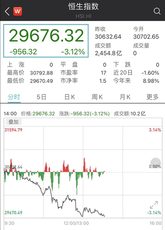 早在上午,香港股市就在加税的传言下大跌,午后消息证实之后,跌幅进一步扩大,截至发稿,恒生指数跌幅达到3%,科技指数跌幅达到近6%