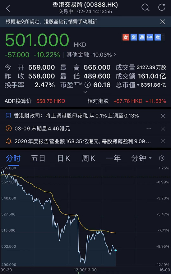 港交所:对政府提高股票交易印花税的决定表示失望