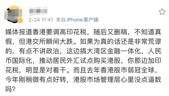 2月24日,香港特区政府宣布,上调股票印花税。