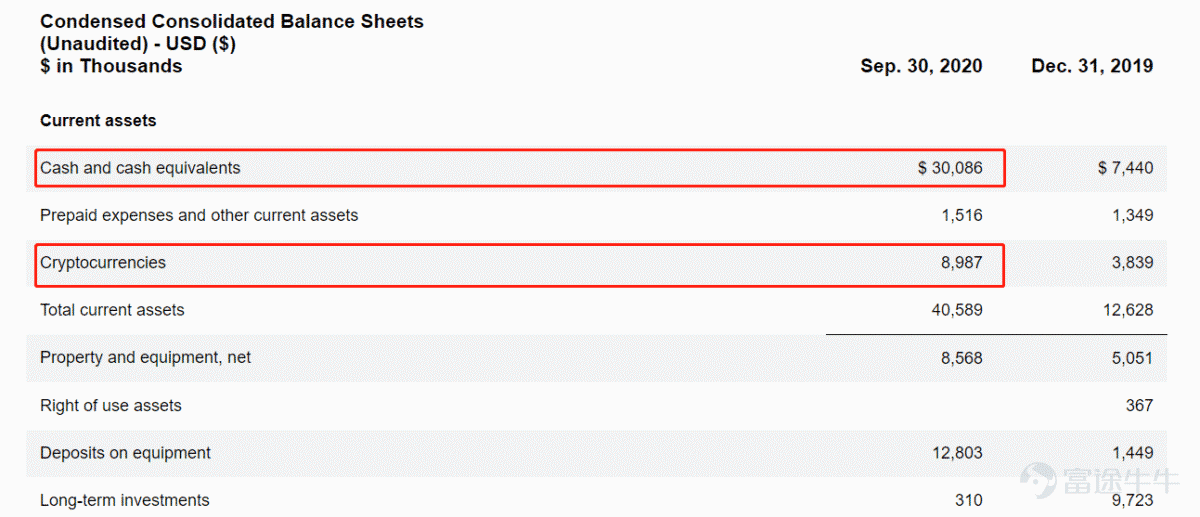 而在其资产负债表中,截至9月底其持有的数字货币和现金约为3910万美元的,比2019年底的1130万美元大幅增加。