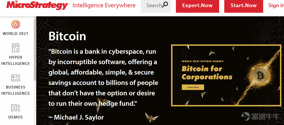 Saylor在去年美联储‘放水’进行史无前例的货币宽松政策之后,坚定的将公司现金转换为比特币。在公司官网上,Saylor的话被放在显著位置,他认为比特币是人们可负担、简单、安全的储蓄手段。