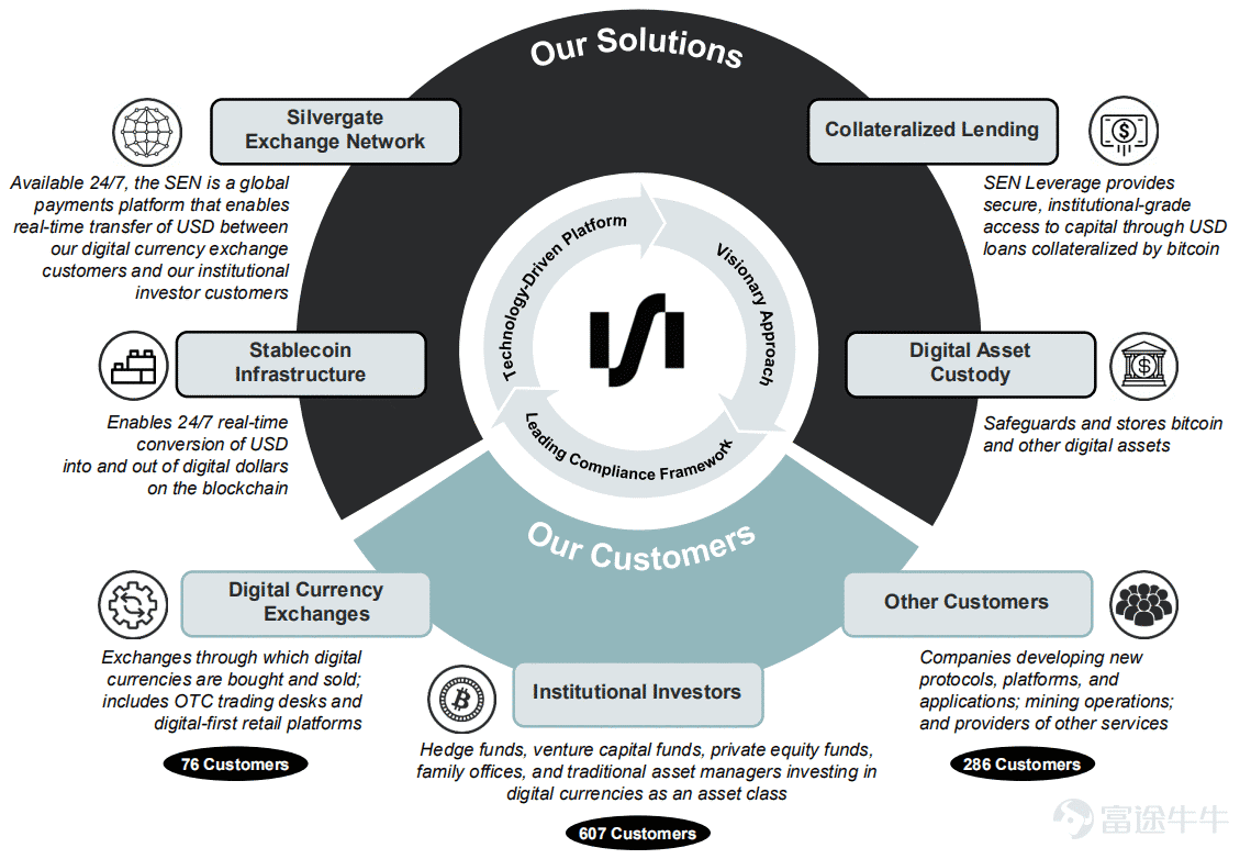 据Slivergate公布的数据,目前公司客户中有76家数字货币交易所、607家机构投资者(其中包括对冲基金、创投基金、家族办公室、传统资产管理机构等),此外还有新近进入数字货币行业的公司等286家。