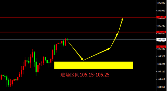 105.15-105.25区间买入,止损20点,目标105.45、105.65、105.85。