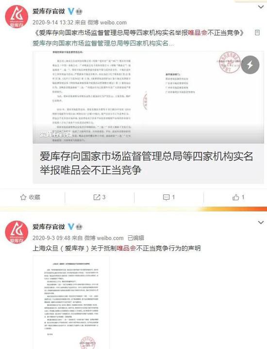 此事一出,外界很快联想到,这或是因为几个月前同行的举报。早在2020年9月3日,爱库存曾针对唯品会“二选一”发布声明,9月11日更向市场监管总局实名举报。