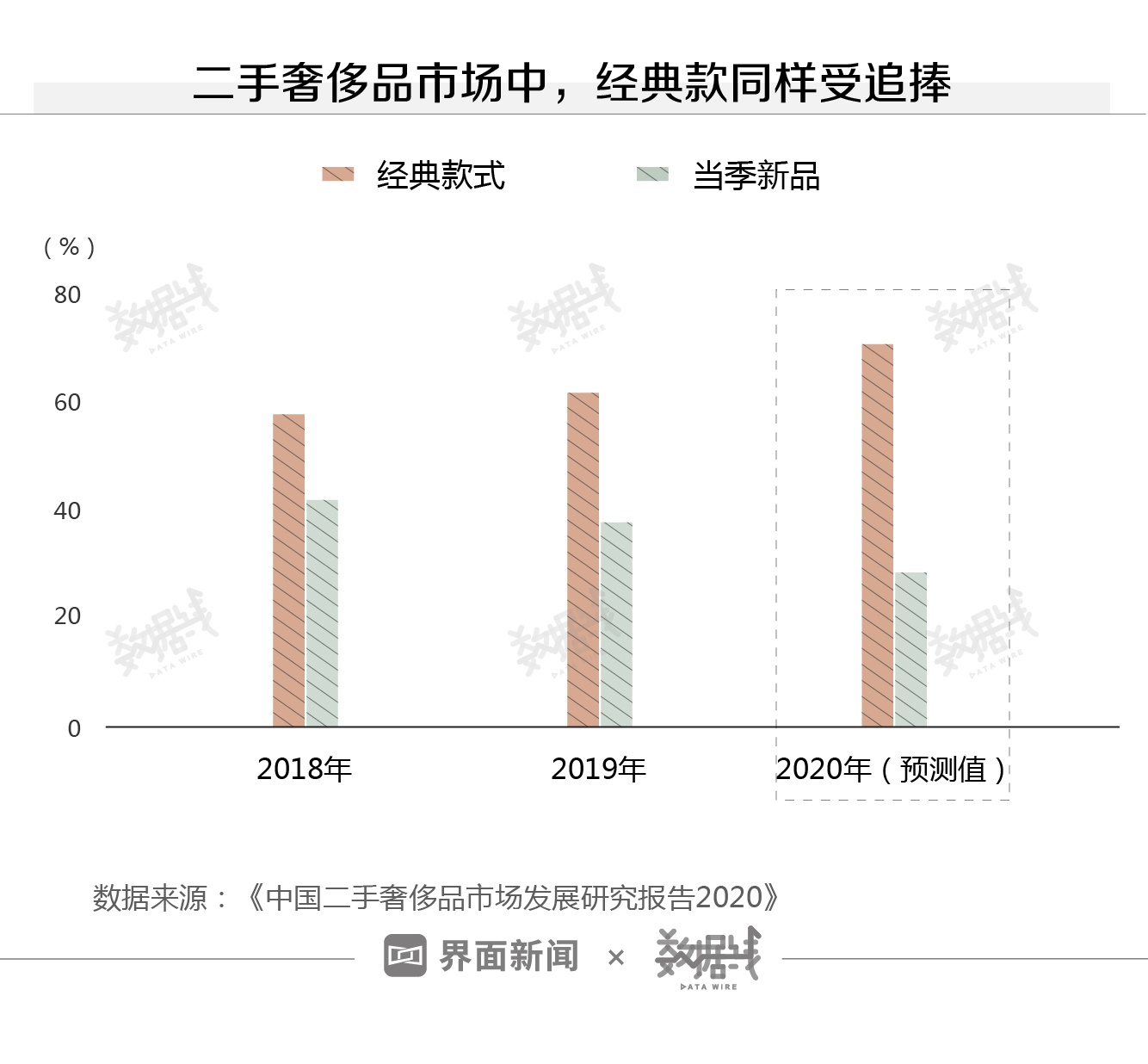 二手奢侈品市场也一样。据《中国二手奢侈品市场发展研究报告2020》,预计2020年会有7成以上的人买经典款的二手奢侈品,比买新款的2倍还多。