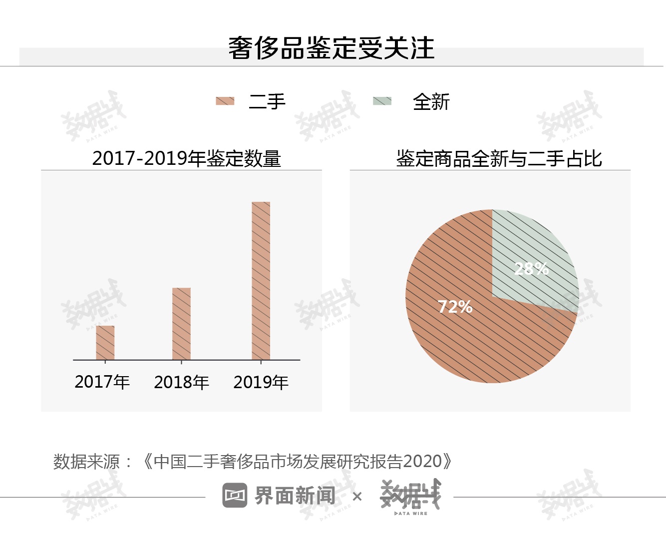 从另一组数据来看,奢侈品鉴定数量也在成倍增长,二手奢侈品正在国内走红。据《中国二手奢侈品市场发展研究报告2020》,优奢易拍的鉴定数量逐年增加。2019年鉴定数量约为2018年的2.3倍。其中,针对二手产品的鉴定占比达72%。