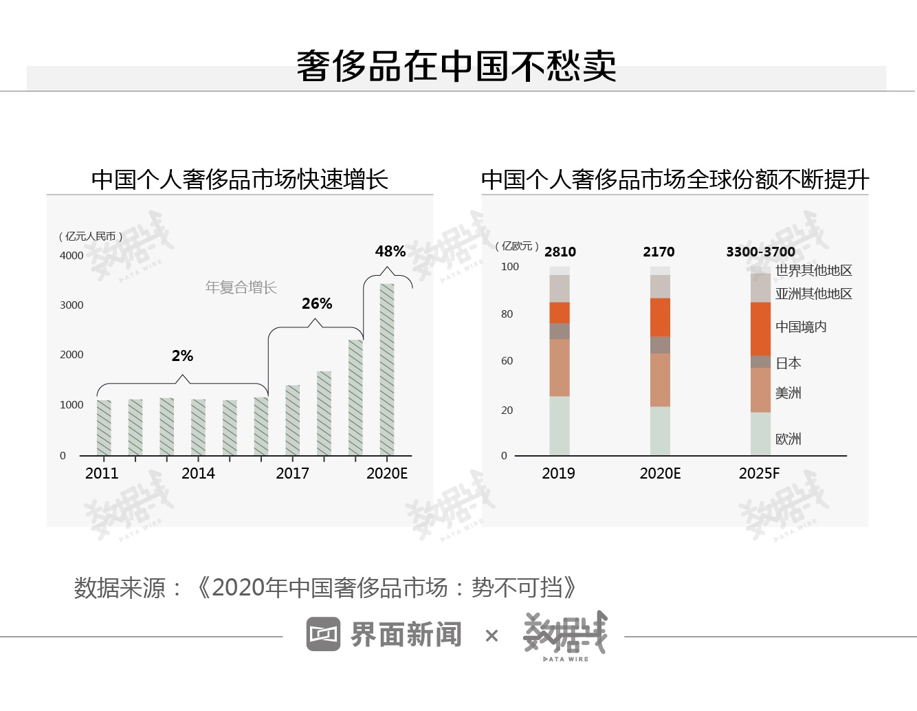 钱包和面子哪个更重要?更多中国人还是愿意花钱买新的。过去一年,尽管奢侈品多次涨价,大家还是买得起劲。据贝恩公司预计,中国个人奢侈品市场2020年增长接近50%,相比2019年,中国市场在全球占比翻了近一番,达到20%。