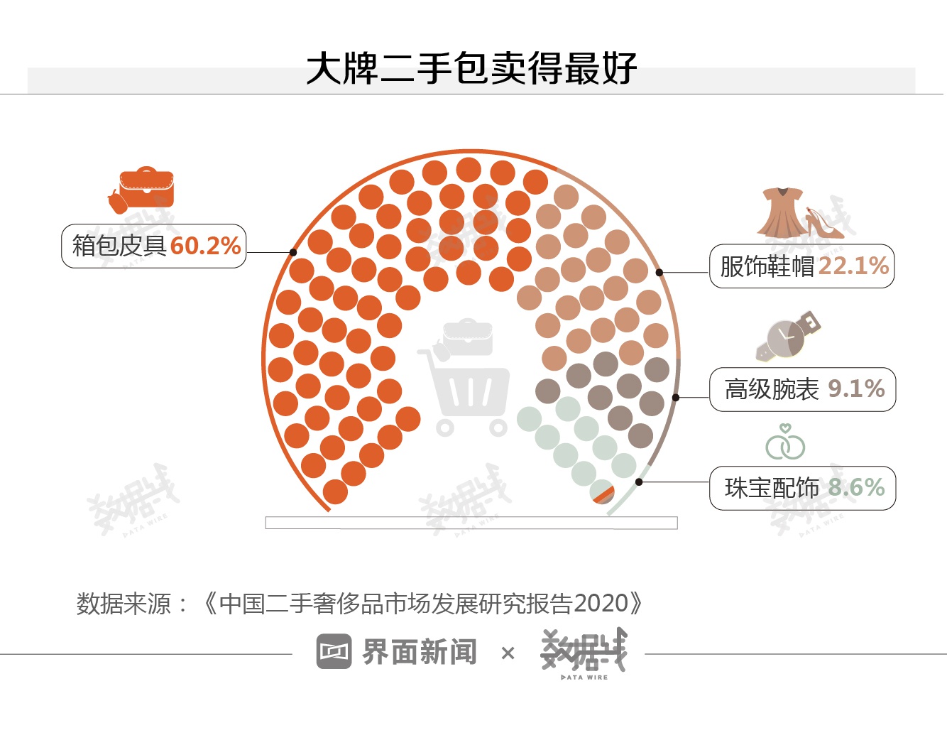 包是最受欢迎的。据优奢易拍数据,2019年平台卖出的二手奢侈品中,超6成是箱包皮具,服饰鞋帽占了约2成。
