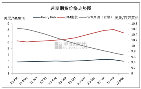 中美LNG均价对比图旨在对比中美两国LNG价格走势,卓创LNG均价将全国LNG工厂及接收站出厂价格加权平均获得,切尼尔LNG价格是指切尼尔LNG终端出口长约价格,采用HenryHub期货价格为基础进行计算。从走势来看,切尼尔出口终端长约价格也有明显的季节趋势,随着美国地区气温变化,其关联的HenryHub期货价格随之起伏。整体来看,对比中美LNG价格走势,近期中美市场行情存在差异。