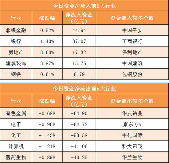 28个申万一级行业中,8个行业实现资金净流入,其中非银金融行业净流入44.94亿元居首。