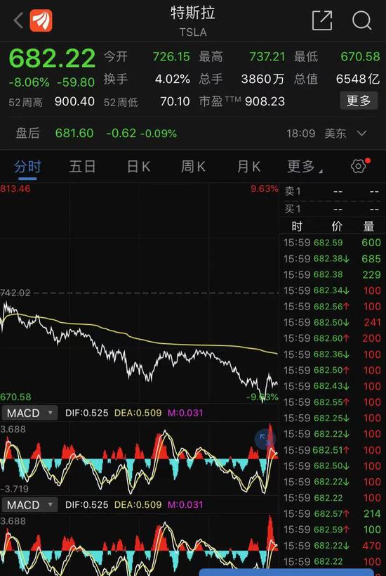 特斯拉盘中跳水