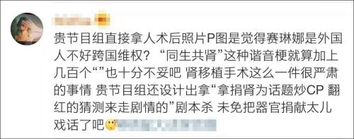 “肾移植手术这么严肃的事情,却被拿来玩梗炒CP,太儿戏了吧。”