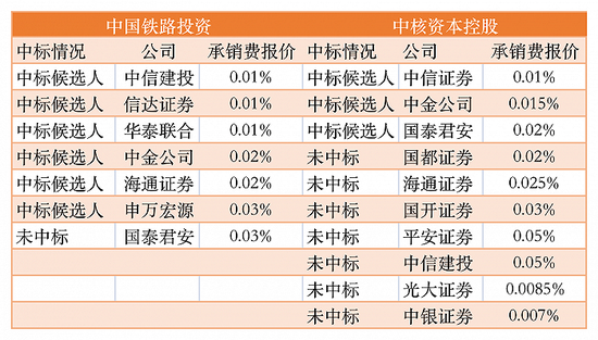 1月4日,中核资本公示公司债券主承销商中标候选人,中信证券、中金公司和国泰君安从10家券商中脱颖而出。其中,中信证券为牵头主承销商,中金公司和国泰君安为联席主承销商。三家承销商各自承担注册发行额度(40亿)40%、30%、30%的承销工作。值得一提的是,在此次招标中,参与招标的中银证券给出0.007%的“折中折”承销费率。