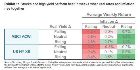 近日,摩根士丹利固定收益研究主管Vishwanath Tirupattur发表报告整合了该行在美债收益率及通胀预期上升对股票等相关风险资产表现的观点,并总结道,预计实际收益率将逐步上升,而通货再膨胀交易趋势将基本维持不变。