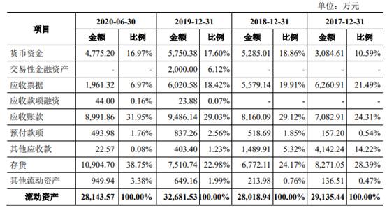 力诺特玻的流动资产主要由货币资金、应收票据、应收账款、存货等构成。上述同期,公司的货币资金分别为3084.61万元、5285.01万元、5750.38万元和4775.20万元,主要是银行存款和其他货币资金。