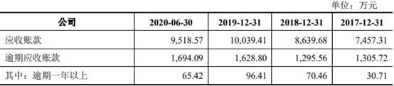 上述同期,力诺特玻逾期应收账款分别为1305.72万元、1295.56万元、1628.80万元和1694.09万元,占应收账款余额比例为17.51%、15.00%、16.22%和17.80%。公司逾期一年以上应收账款金额分别为30.71万元、70.46万元、96.41万元和65.42万元,主要为公司与河北天成药业股份有限公司涉诉的应收账款48.54万元,力诺特玻已对其全额计提了坏账准备。